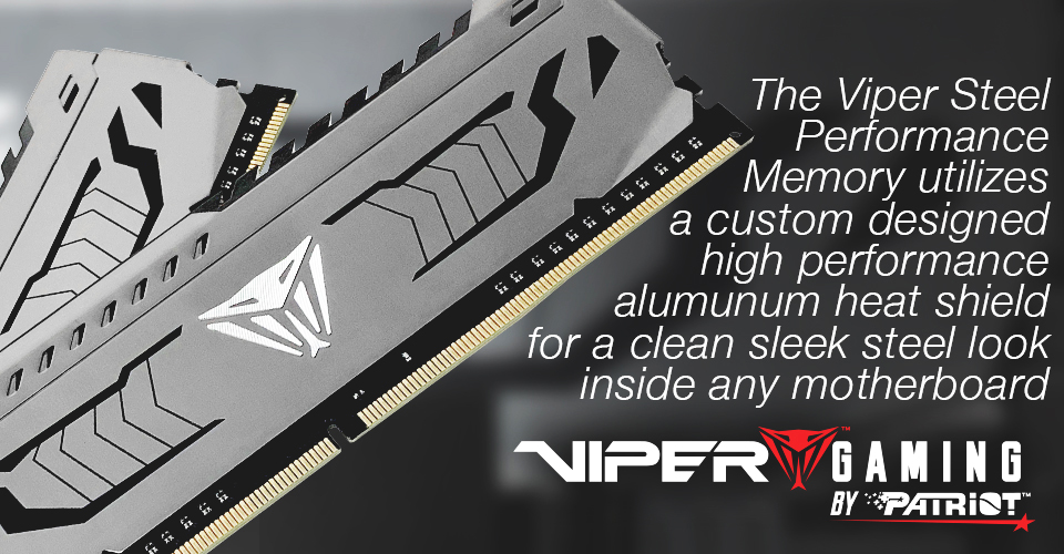 Dòng sản phẩm ram cap cấp Viper Steel của Patriot hiện có sẵn các bus từ 3000MHz lên đến 4400MHz và tích hợp sẵn phần mềm XMP 2.0. Được kiểm tra thủ công cho từng sản phẩm, Viper Steel có thời gian bảo hành lên đến 3 năm.