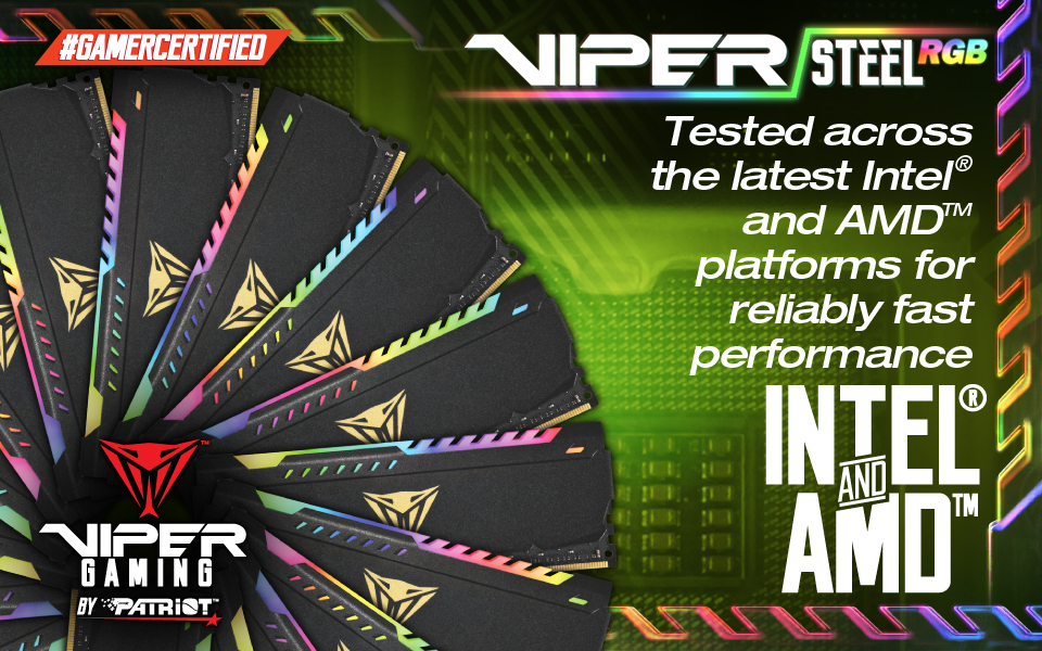 Dòng sản phẩm ram DDR4 RGB mới ra mắt Viper Steel của Patriot được tạo ra để đem lại hiệu năng siêu phàm với đèn LED RGB tuyệt vời có thể tùy chỉnh theo thị hiếu của người sử dụng, nhằm giúp cho chiếc PC trở nên đáng mơ ước. Sở hữu tản nhiệt nhôm cao cấp được trau chuốt tỉ mỉ, mà gắn vào bất cứ bộ PC cao cấp nào cũng khiến cho nó trở lên đẳng cấp và thực sự khác biệt. Chiếc tản nhiệt này có thể giúp cho thanh ram của bạn được giải nhiệt nhanh chóng, giúp xử lý các ứng dụng PC rất mượt mà với hiệu năng cao khi hoạt động liên tục. Được tính toán thiết kế để tương thích với những sản phẩm mới nhất của cả hai nền tảng Intel® và AMD™, dòng sản phẩm ram DDR4 Viper Steel RGB đem lại sự hoàn hảo về hiệu năng cũng như thiết kế ấn tượng với đèn LED RGB tùy biến. Dòng sản phẩm này cũng được tích hợp phần mềm XMP 2.0 giúp cho việc cài đặt ép xung tự động được tối ưu và ổn định. Được thiết kế tương thích và đồng bộ với tất cả phần mềm LED RGB của các nhà sản xuất bo mạch chủ lớn như Gigabyte, Asus, MSI và Asrock, bạn hoàn toàn yên tâm khi sở hữu sản phẩm cao cấp này. Sản phẩm được kiểm tra thử nghiệm 100% trước khi xuất xưởng và có thời hạn bảo hành là 3 năm.